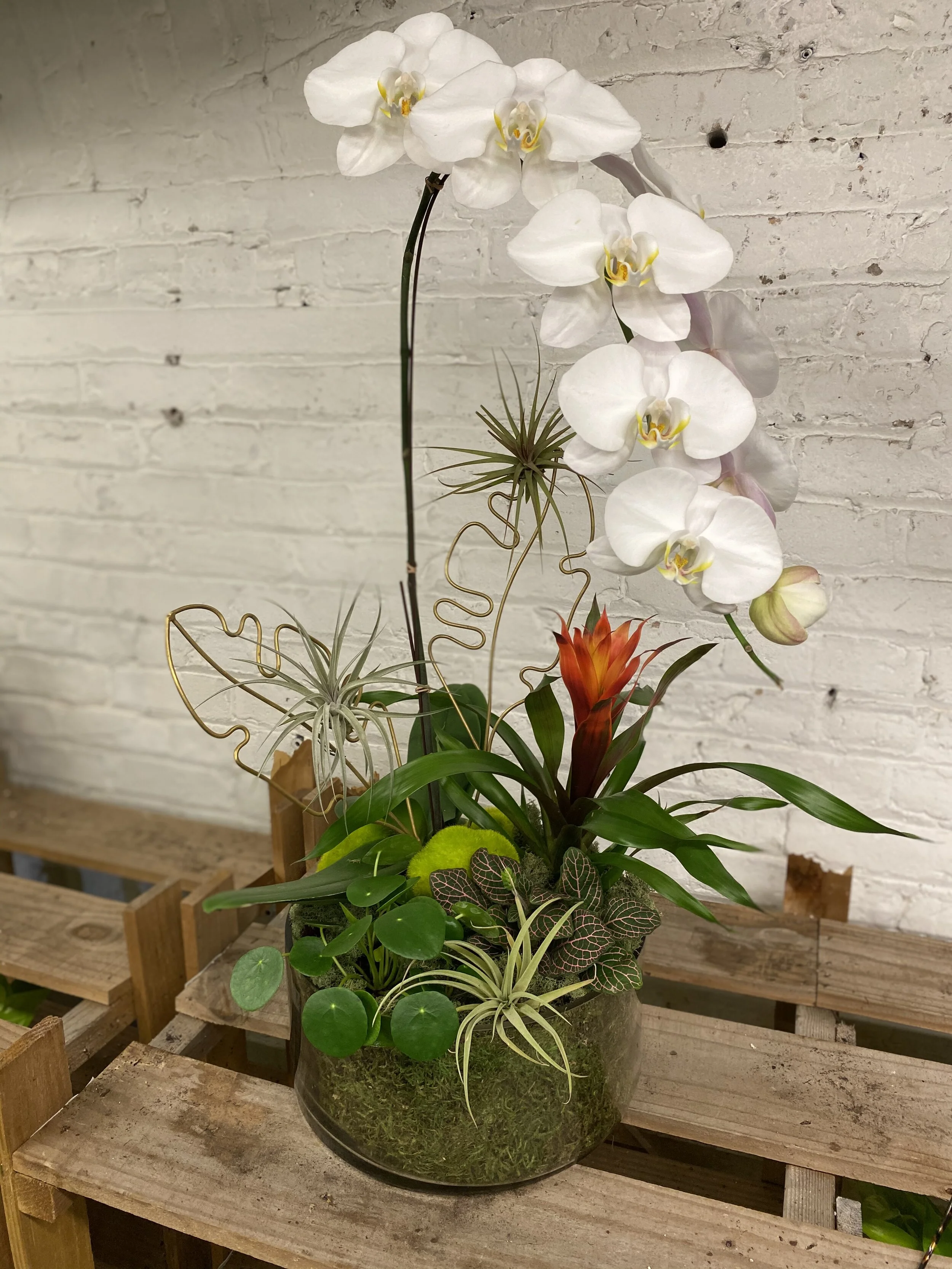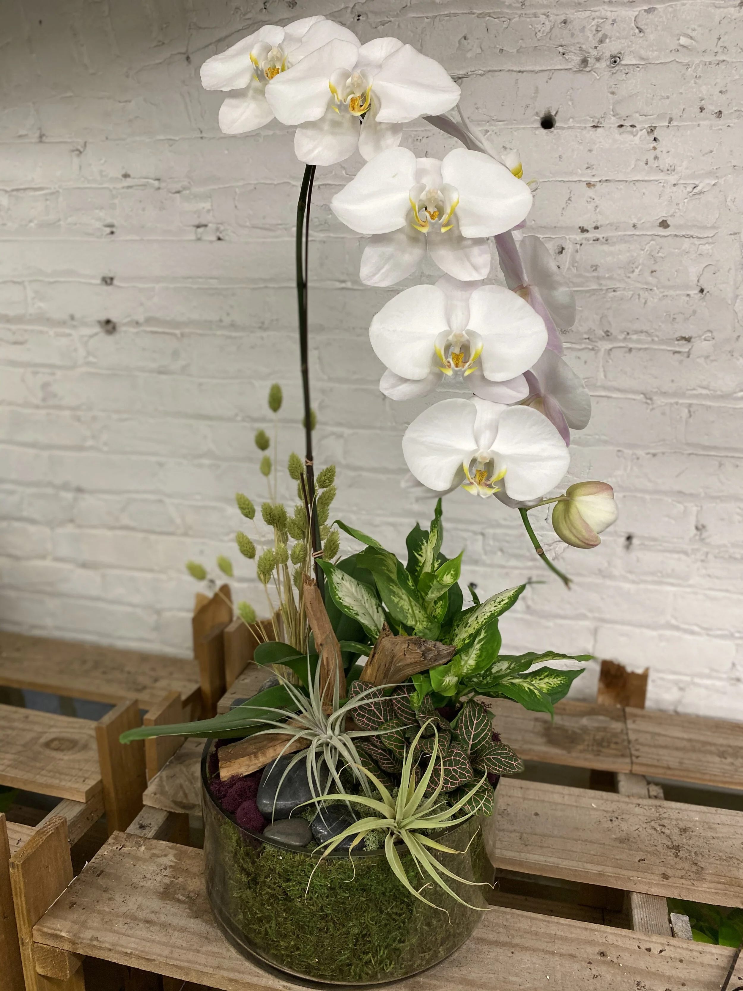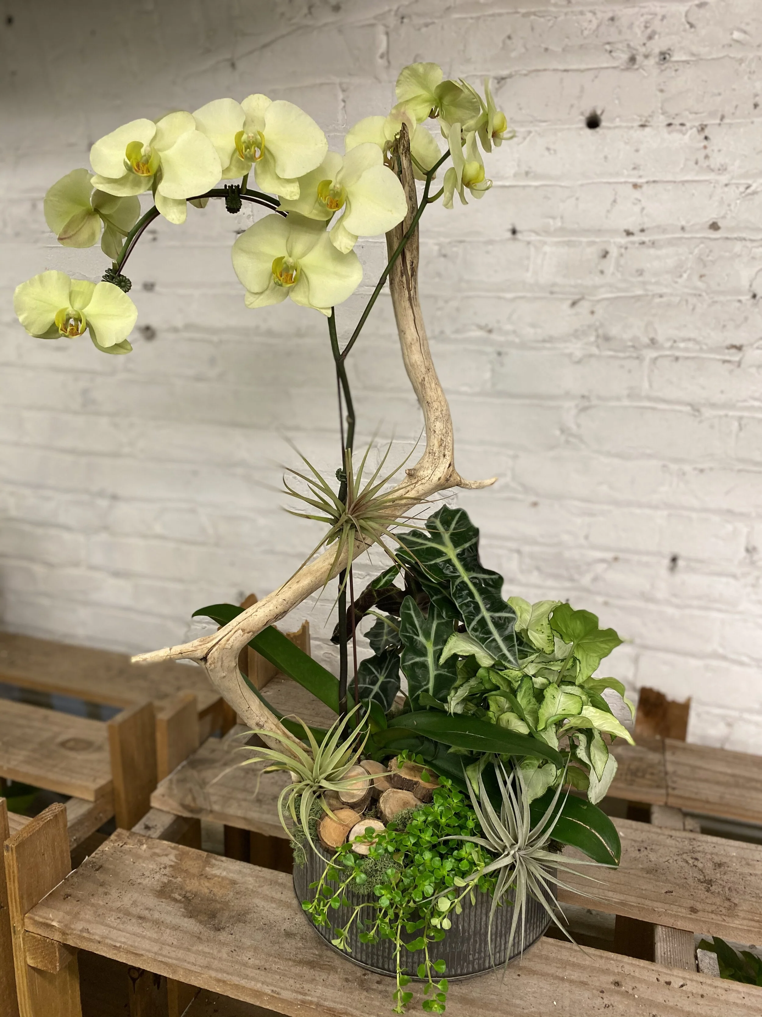 However, if green succulents are where your heart is, we get it. If you’re looking for color that draws your eye to the center of a piece, IGS knows firsthand that a veritable rainbow of orchids will do the trick. We have found that various colors will pair seamlessly with the greenest of succulents. Orchids bring a unique kind of whimsy and elegance to any living space.
