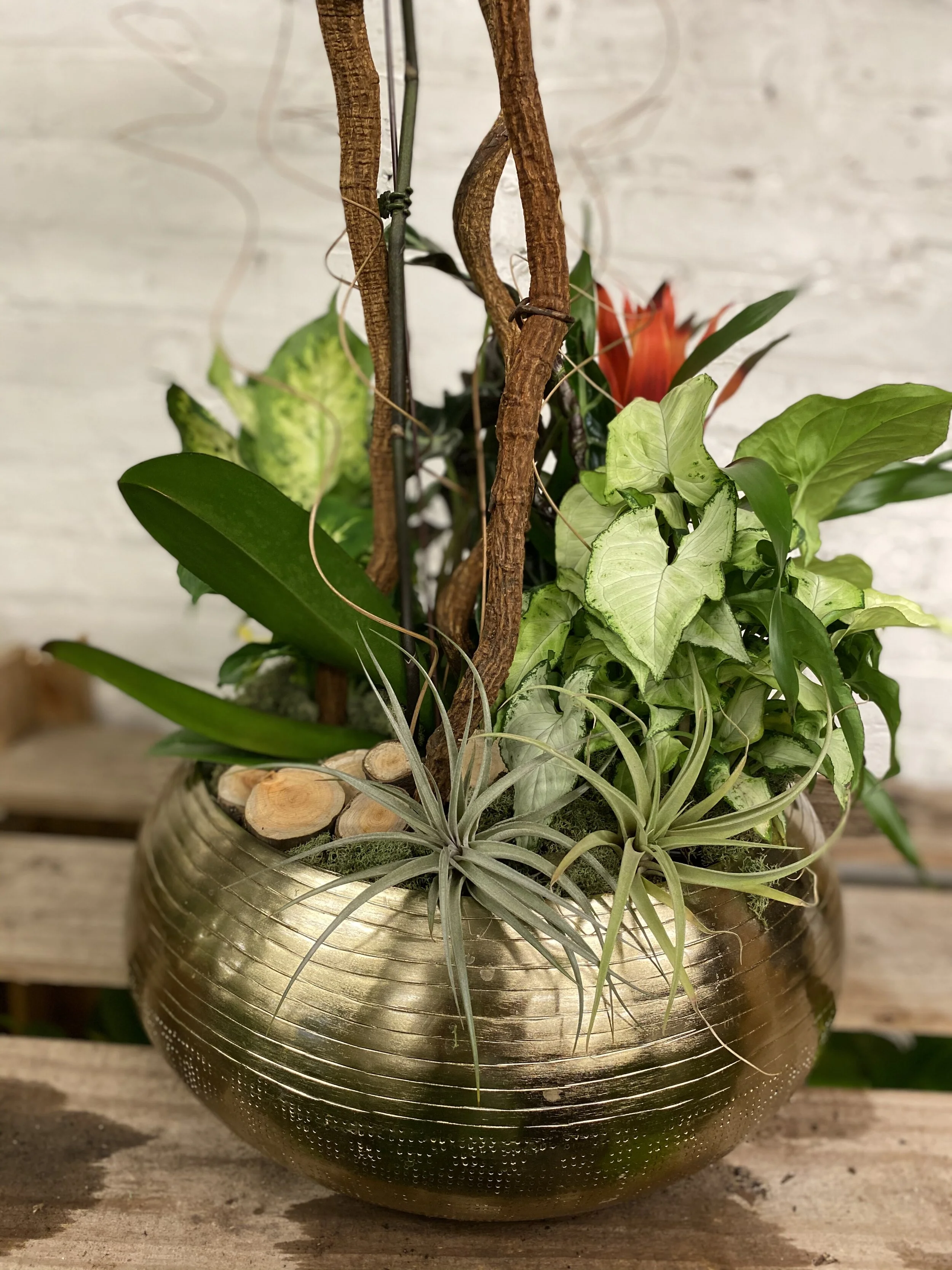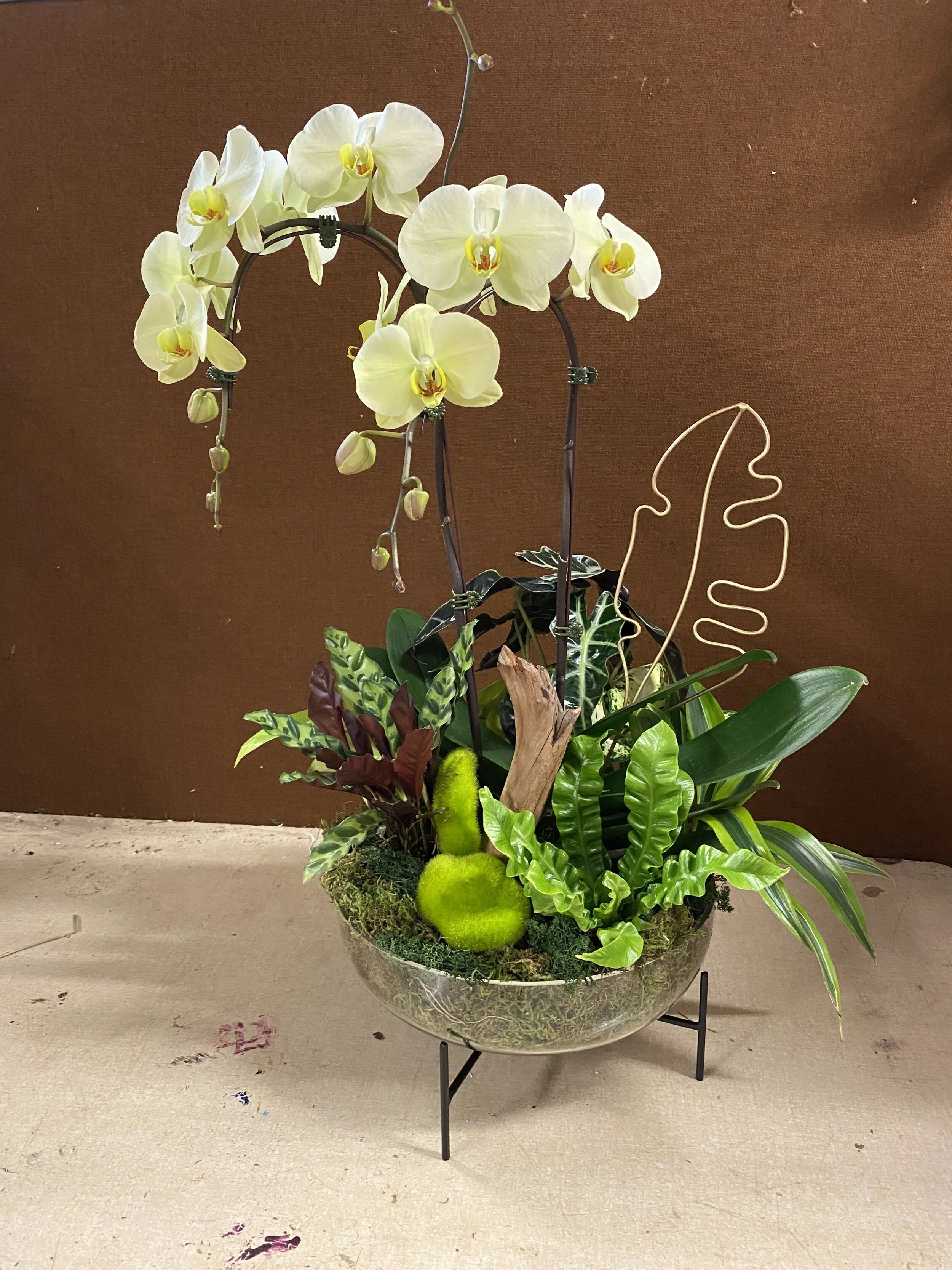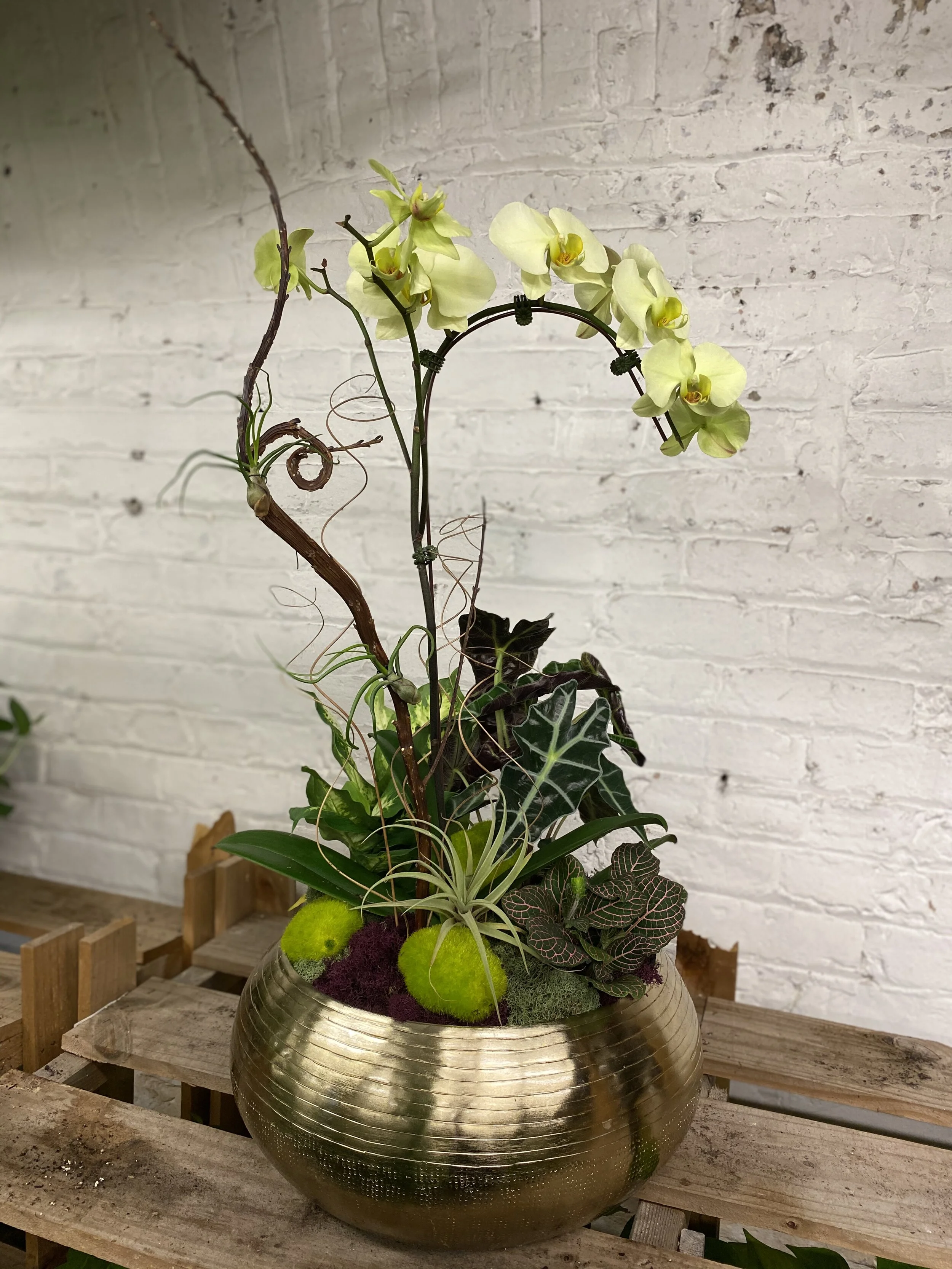 However, if green succulents are where your heart is, we get it. If you’re looking for color that draws your eye to the center of a piece, IGS knows firsthand that a veritable rainbow of orchids will do the trick. We have found that various colors will pair seamlessly with the greenest of succulents. Orchids bring a unique kind of whimsy and elegance to any living space.